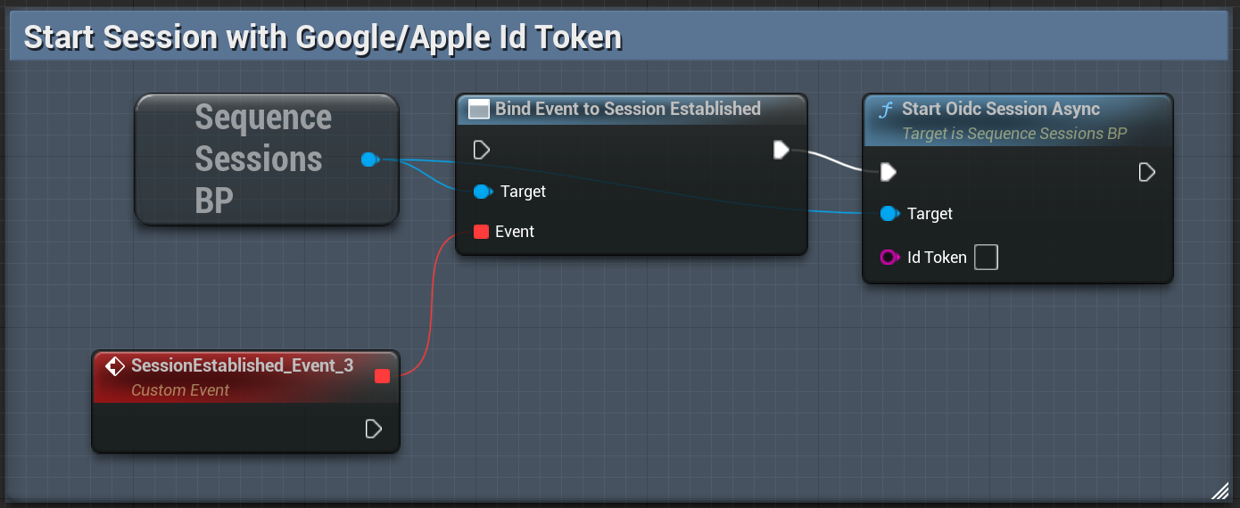 Use this method to start a session using a valid Id token from Google, Apple or Epic Games.- Blueprint